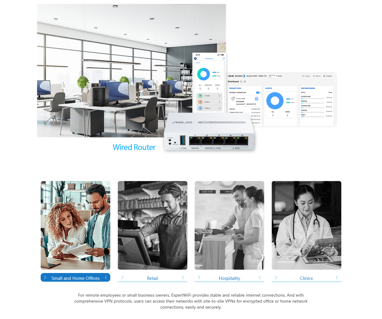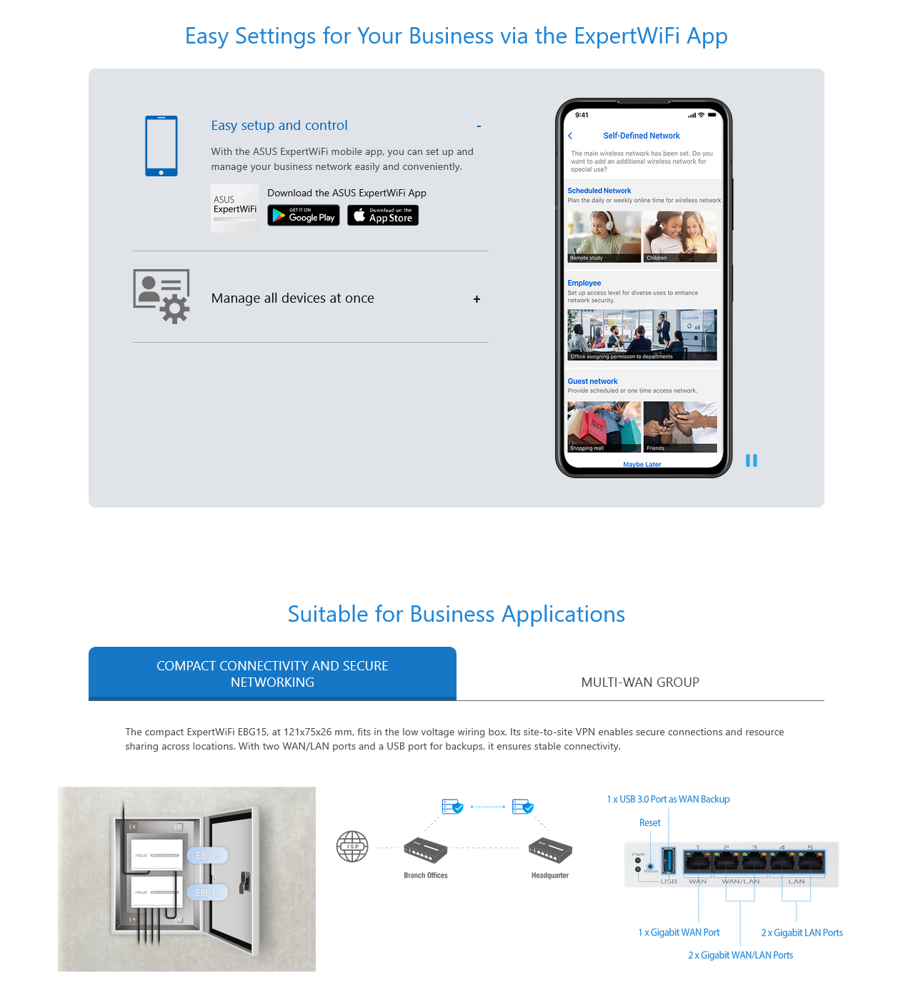 Gigabit VPN wired router, Up to 3 WAN ethernet ports + 1 USB WAN, IPS intrusion prevention, Layer 7 firewall, Commercial-grade network security, Easy centralized management ExpertWiFi app