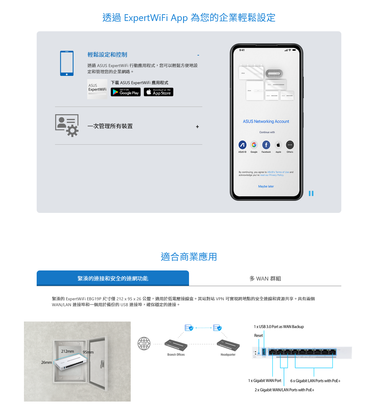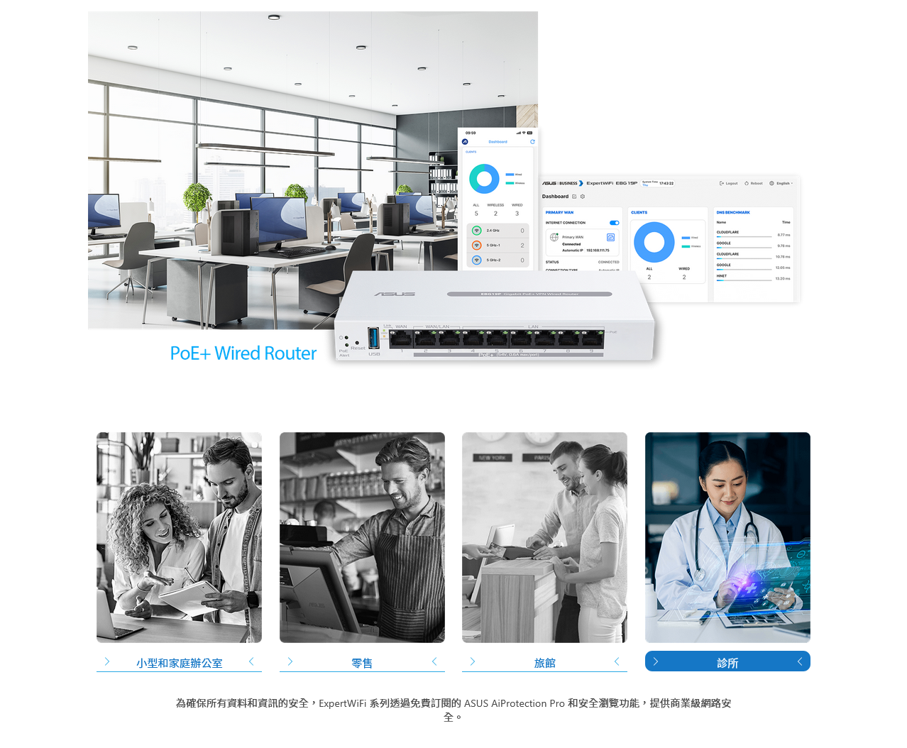 Gigabit PoE VPN 路由器;自訂訪客入口網站;9 連接埠有線路由器,含 8 個 PoE+ 連接埠;123W 支援;免費商業級網路安全和易於管理的應用程式