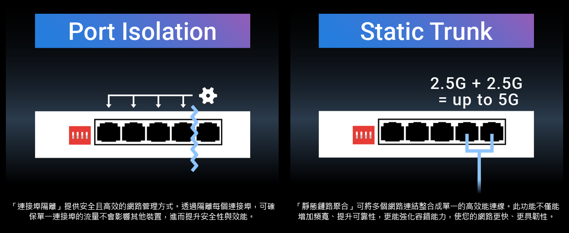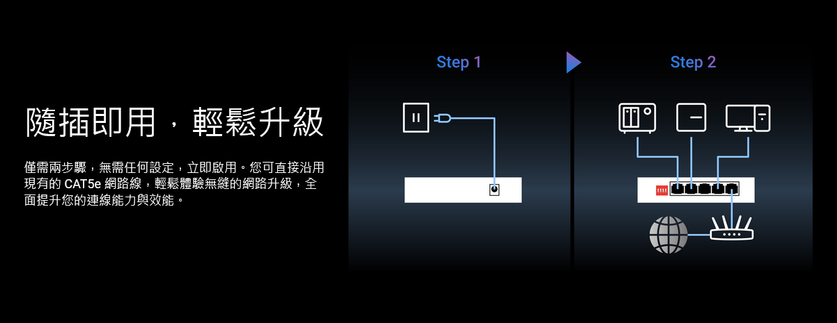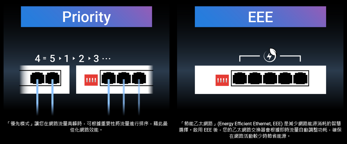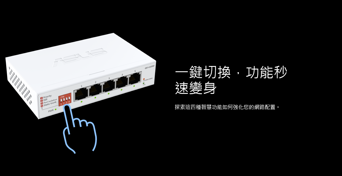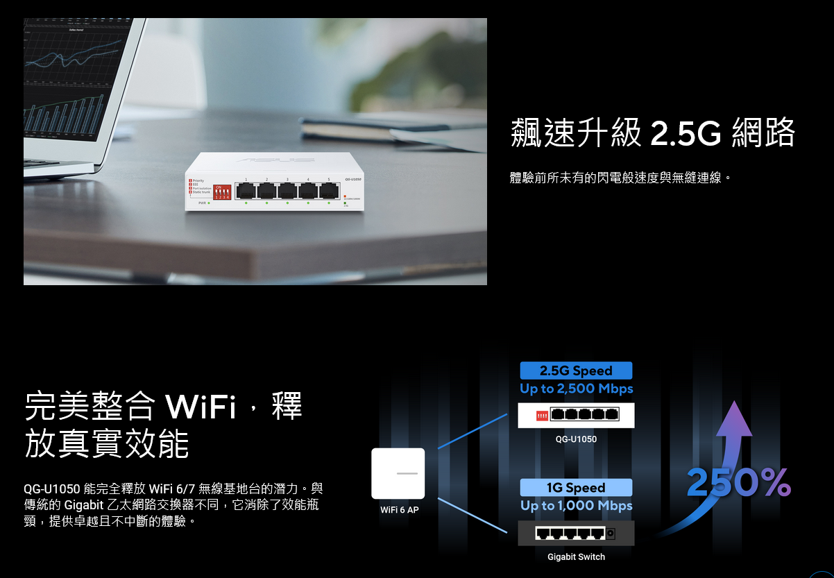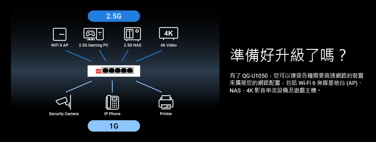 QG-U1050, 5埠 2.5G 無網管交換器, 支援 4 種智慧模式, 家用網路中樞, 辦公室乙太網分流器, 即插即用, 簡易安裝, 桌上型, 靜音運作