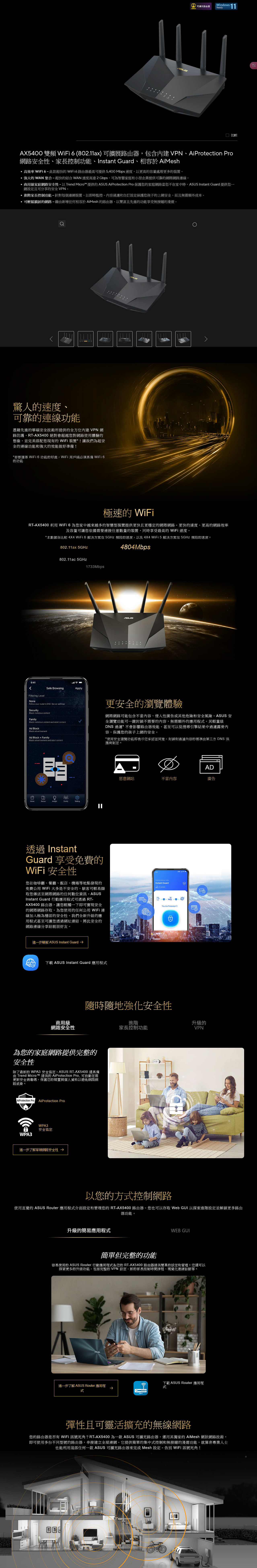 ▪️商用級家庭網路安全性 - 以 Trend Micro™ 提供的 ASUS AiProtection Pro 保護您的家庭網路當您不在家中時,ASUS Instant Guard 提供您一鍵設定且可分享的安全 VPN。