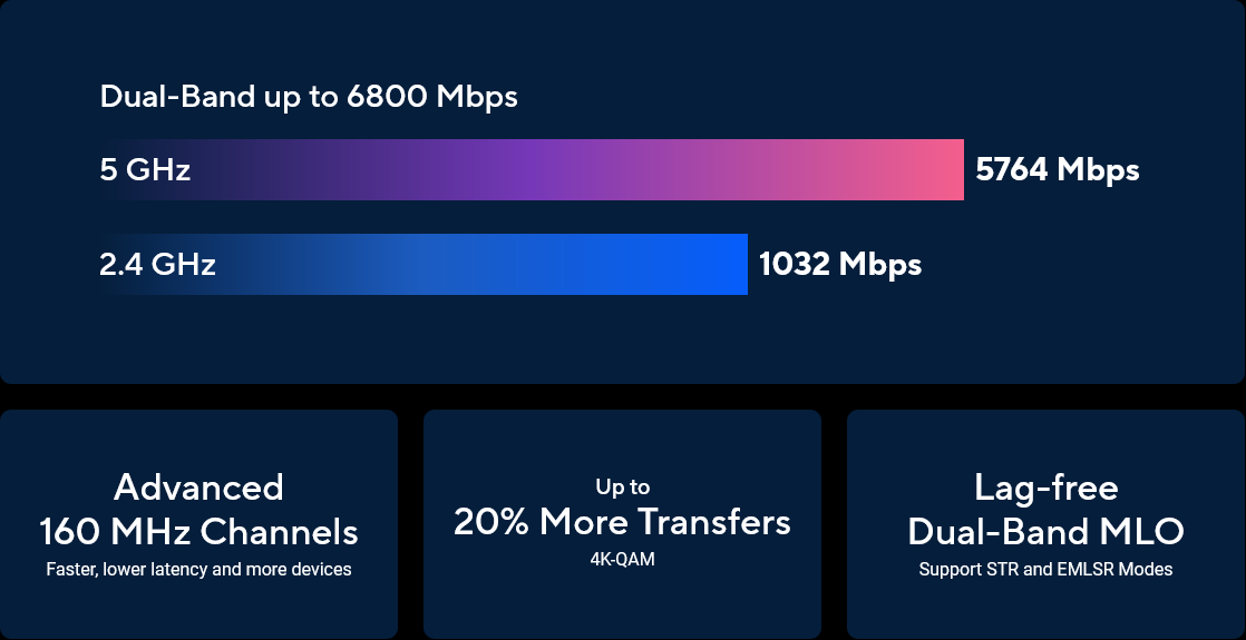 BE6800 ultimate BE performance : 1032+5764 Mbps