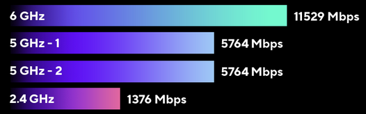WiFi 7 (802.11be) (6GHz): up to 11529 Mbps