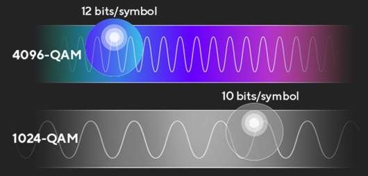 4K-QAM 技術使數據傳輸速率比 WiFi 6/6E 提升高達 20%,因為它採用更高的 QAM,能更密集地打包信號,允許在相同的時間範圍內上傳和下載更多數據。