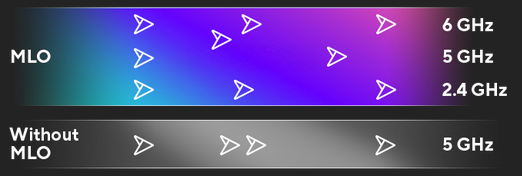 創新的多鏈路操作(MLO)充分利用 WiFi 7,通過同時聚合或無縫切換 6 GHz、5 GHz 和 2.4 GHz 頻段,實現更快的速度和更可靠的 WiFi 連接。