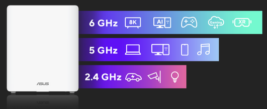 ZenWiFi BQ16 擁有高達 25000 Mbps 的超快速速度。配備雙 5 GHz 頻段,為專用的 mesh 回程提供動力,並為所有兼容設備釋放最佳性能和高可靠性。