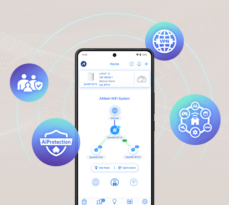 三頻 WiFi 7 (802.11be) Smart AiMesh 可擴充 Mesh 系統,6 GHz WiFi,總體網速可達18 Gbps,覆蓋範圍達 170 坪 (雙入),雙 10G 連接埠,物聯網裝置和家長控管功能專用的 Smart Home Master SSID,進階網路安全性和 VPN