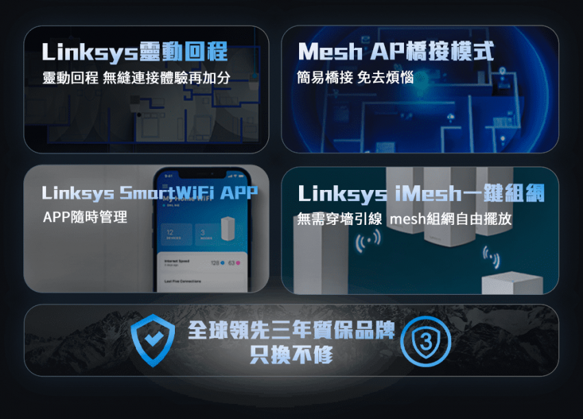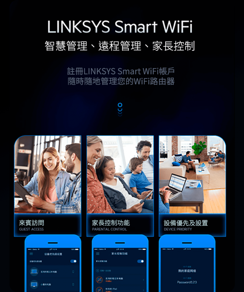 ▪ 透過免費的 Linksys 應用程式輕鬆設定與操控