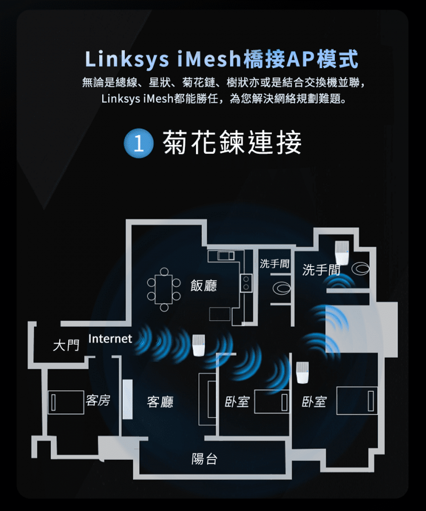 ▪ Velop Intelligent Mesh 實現最大的覆蓋範圍